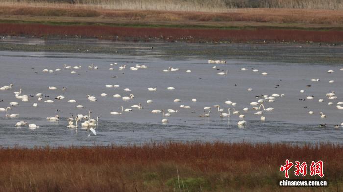 11月13日,在江西鄱阳湖国家级自然保护区内,众多候鸟正在栖息。江西鄱阳湖国家级自然保护区管理局供图