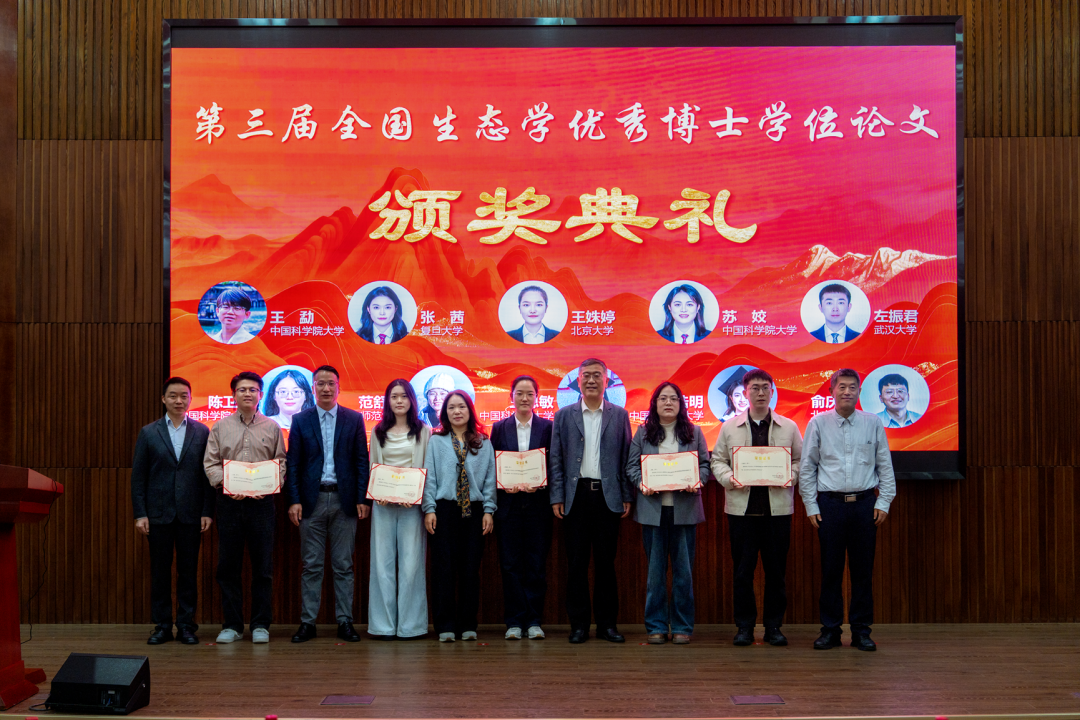 优秀博士学位论文获奖代表与生态学学科评议组代表、资助方代表和复旦大学领导合影